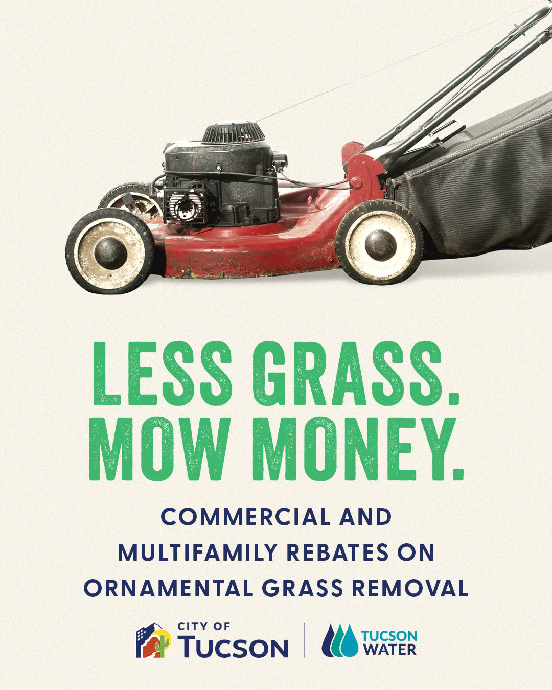 This new grass removal rebate offers commercial and multifamily customers up to $100,000 for the removal of ornamental grass (as defined by City of Tucson). Customers can receive funding to remove up to 20,000 square feet of grass ($5 per square foot) and replace it with a landscape that uses water wisely.